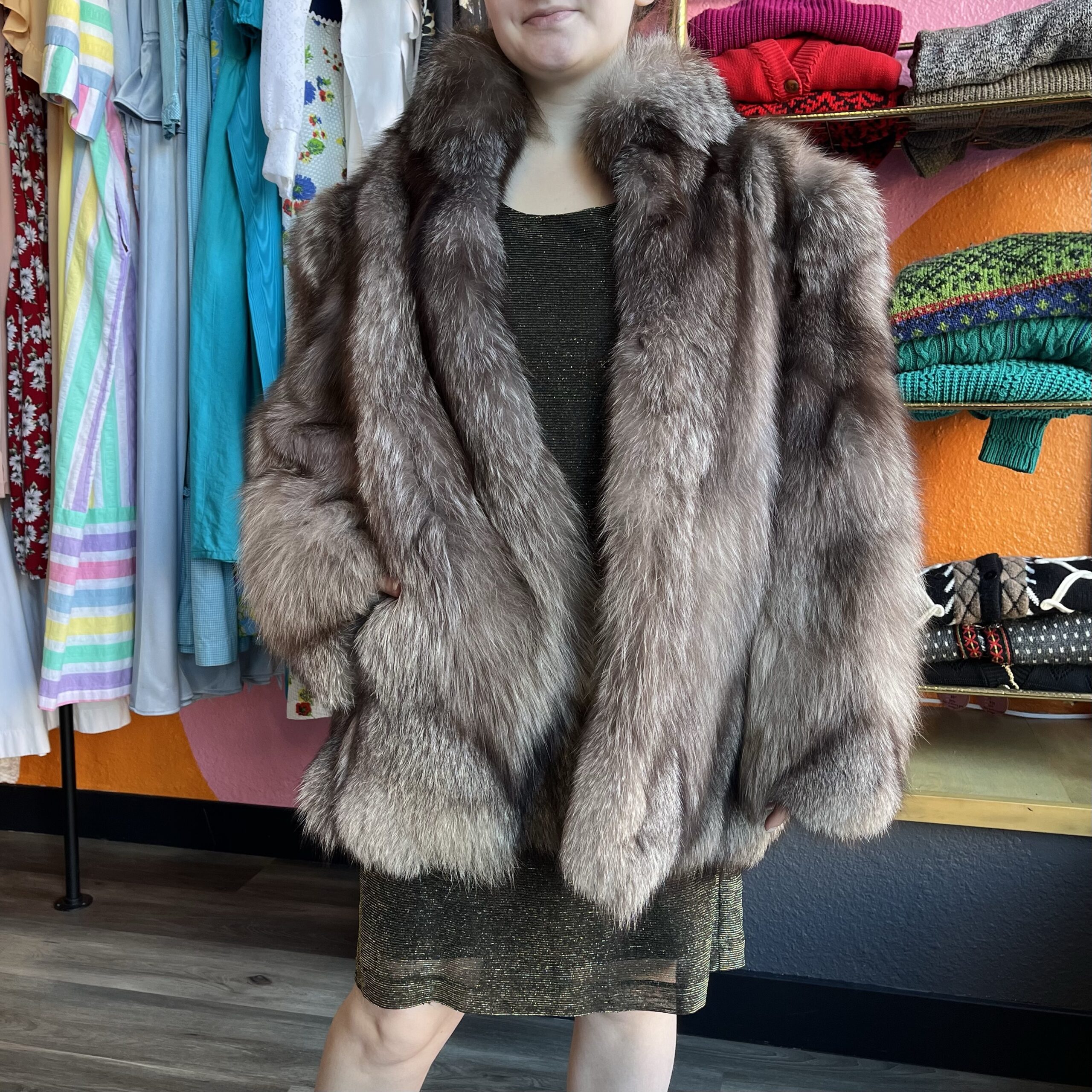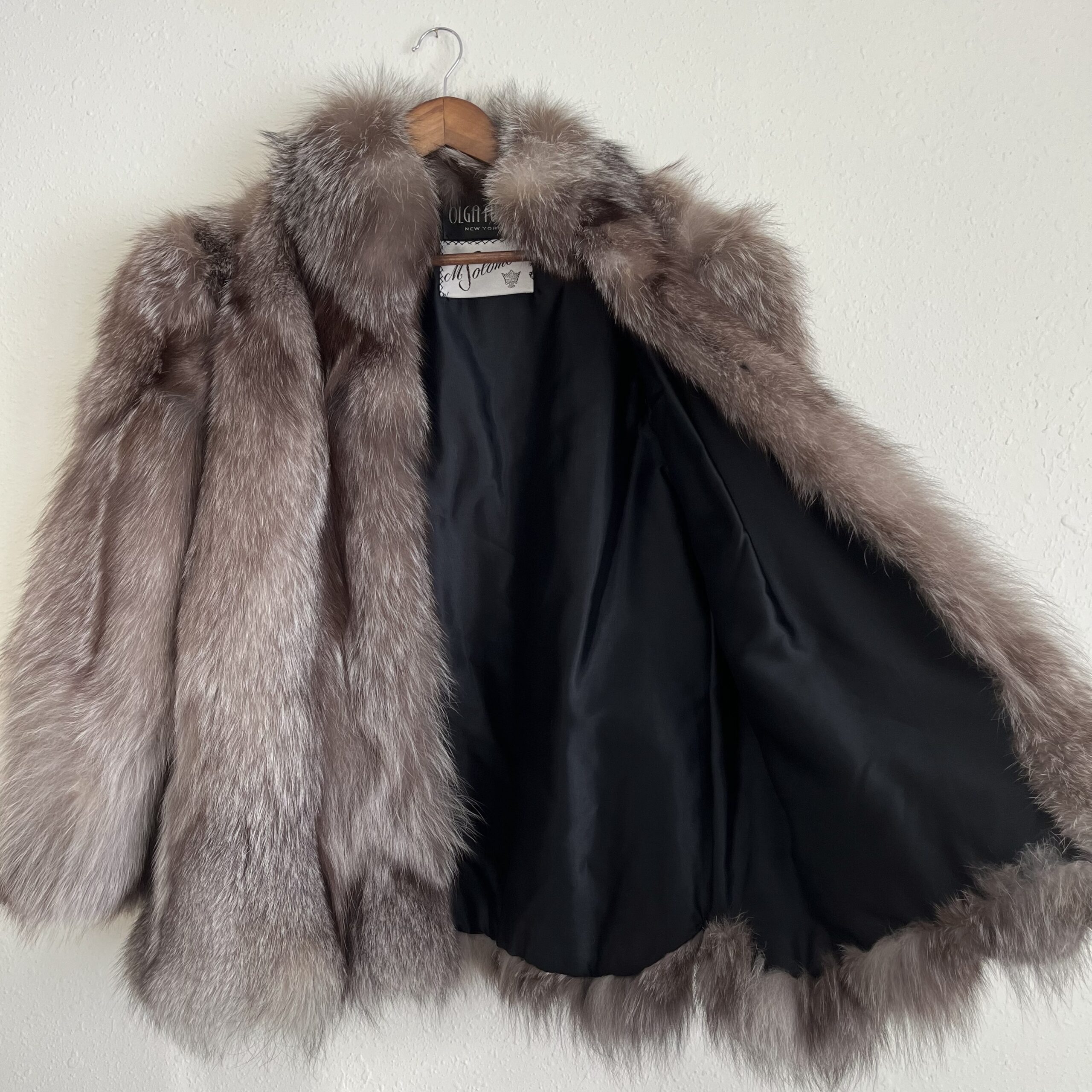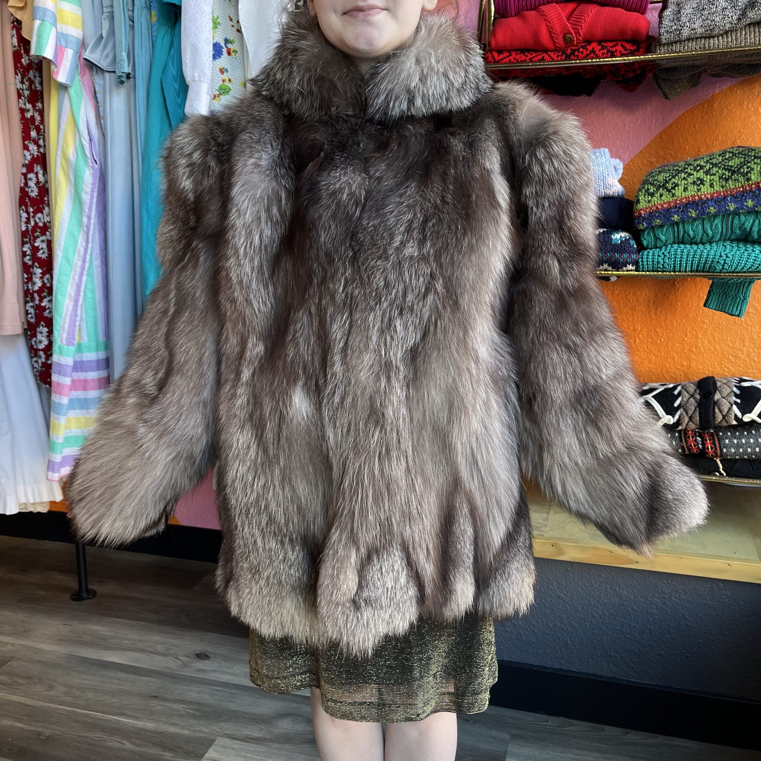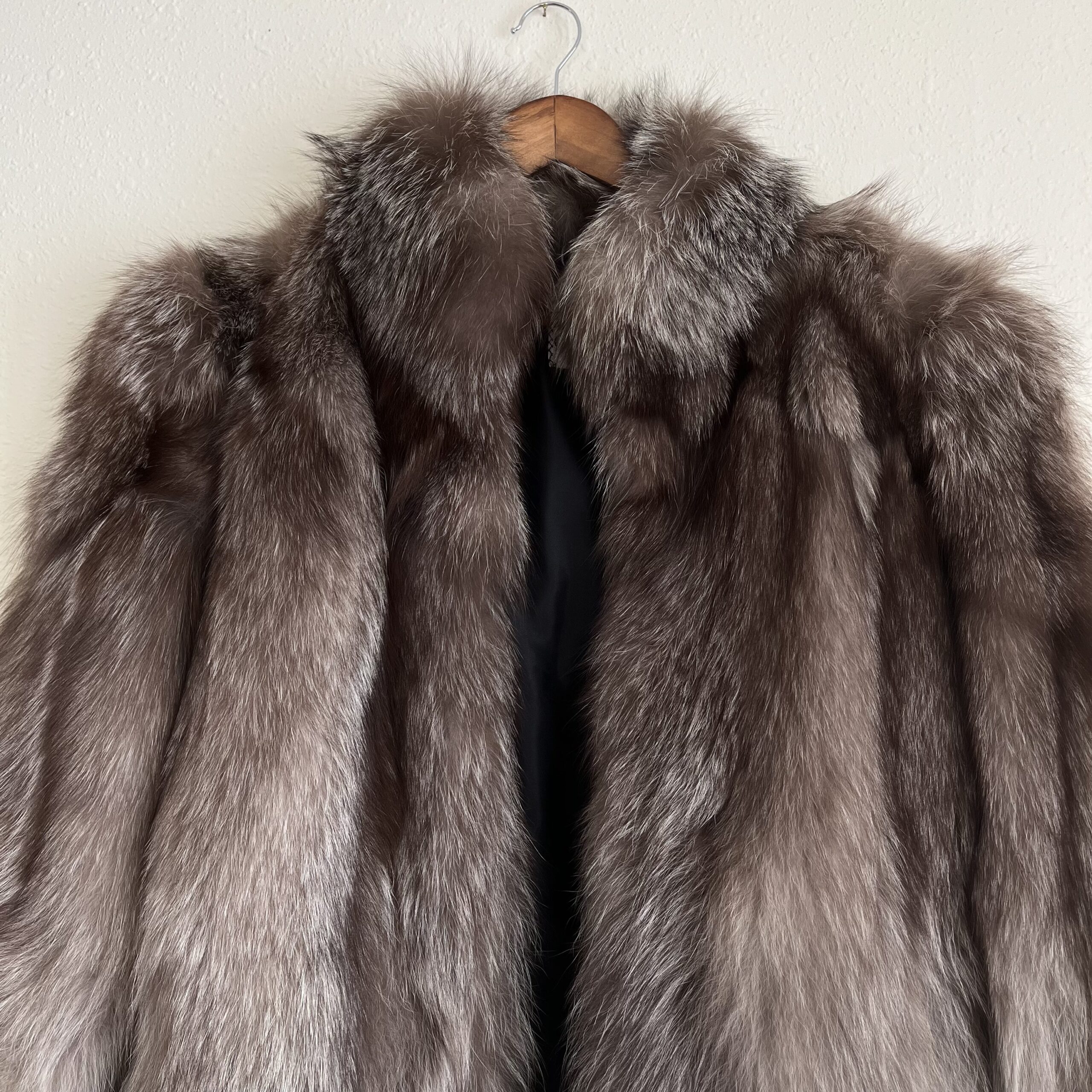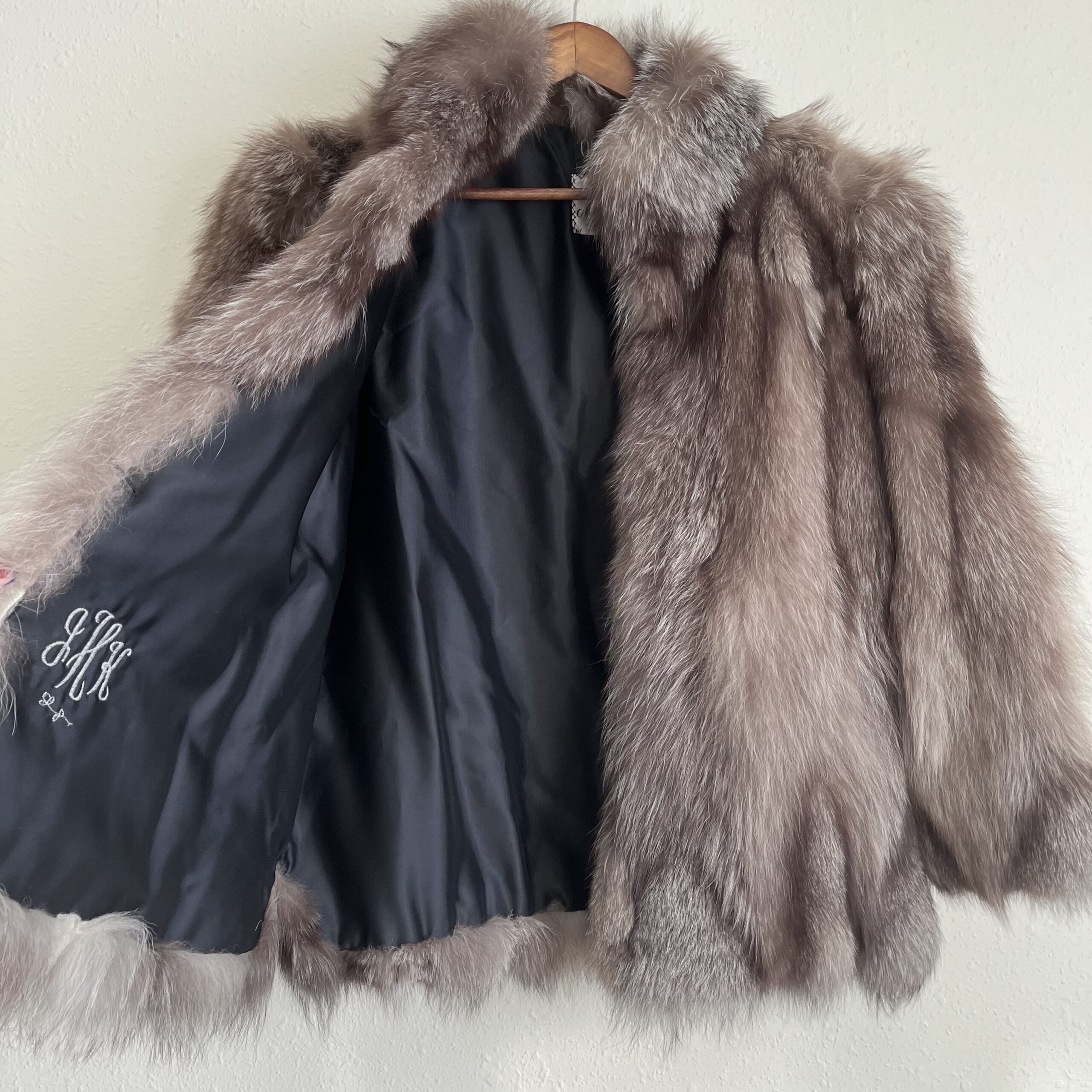This stunning silver fox coat was our owner’s mother-in-law’s. It was given to her as a gift in the 1980s and she only wore it once or twice. It’s in pristine condition!
