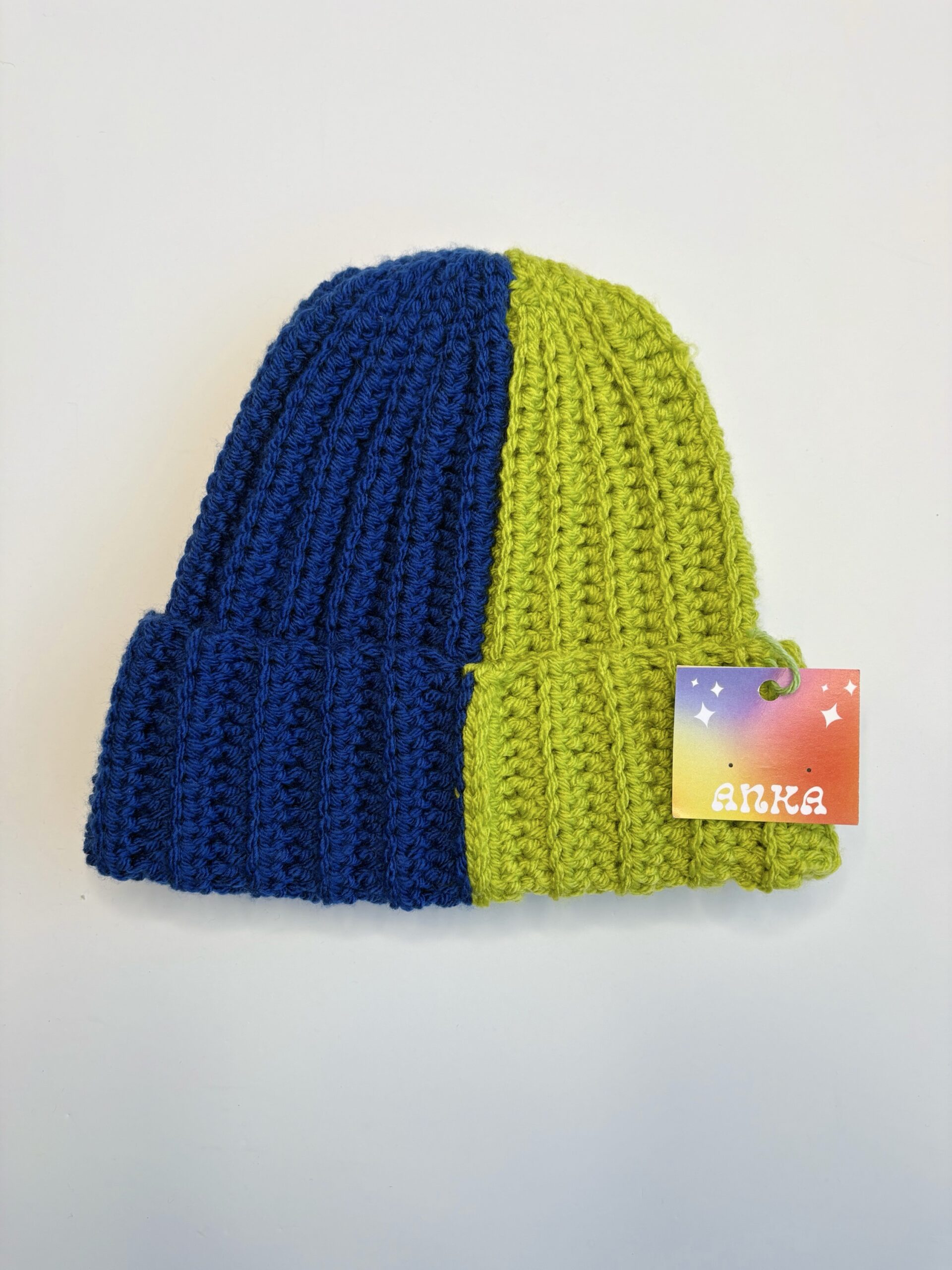 anka snider cobalt/lime two-tone beanie