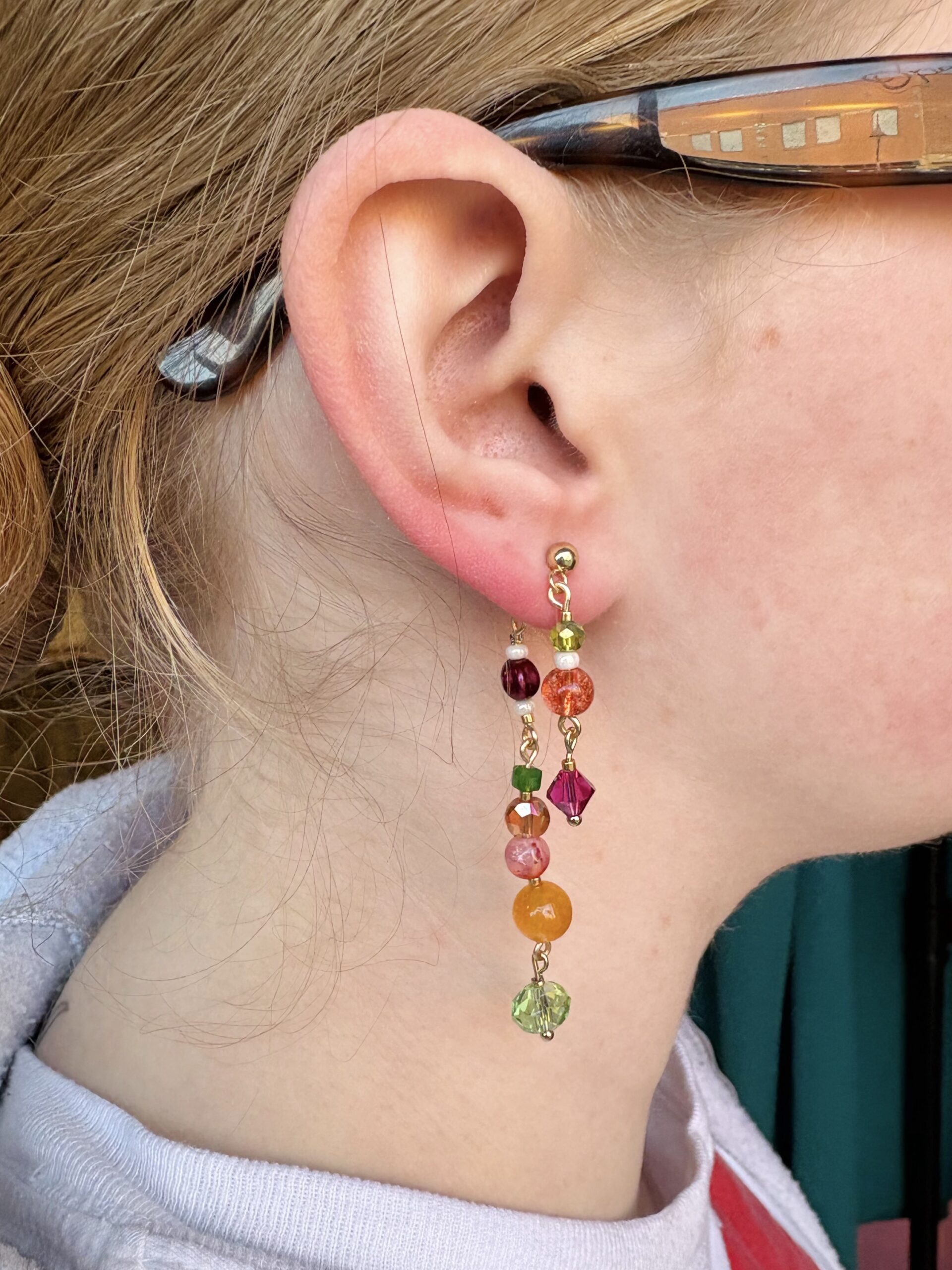 Gold Tone hardware, push-back, green/pink/orange beads in front and back.