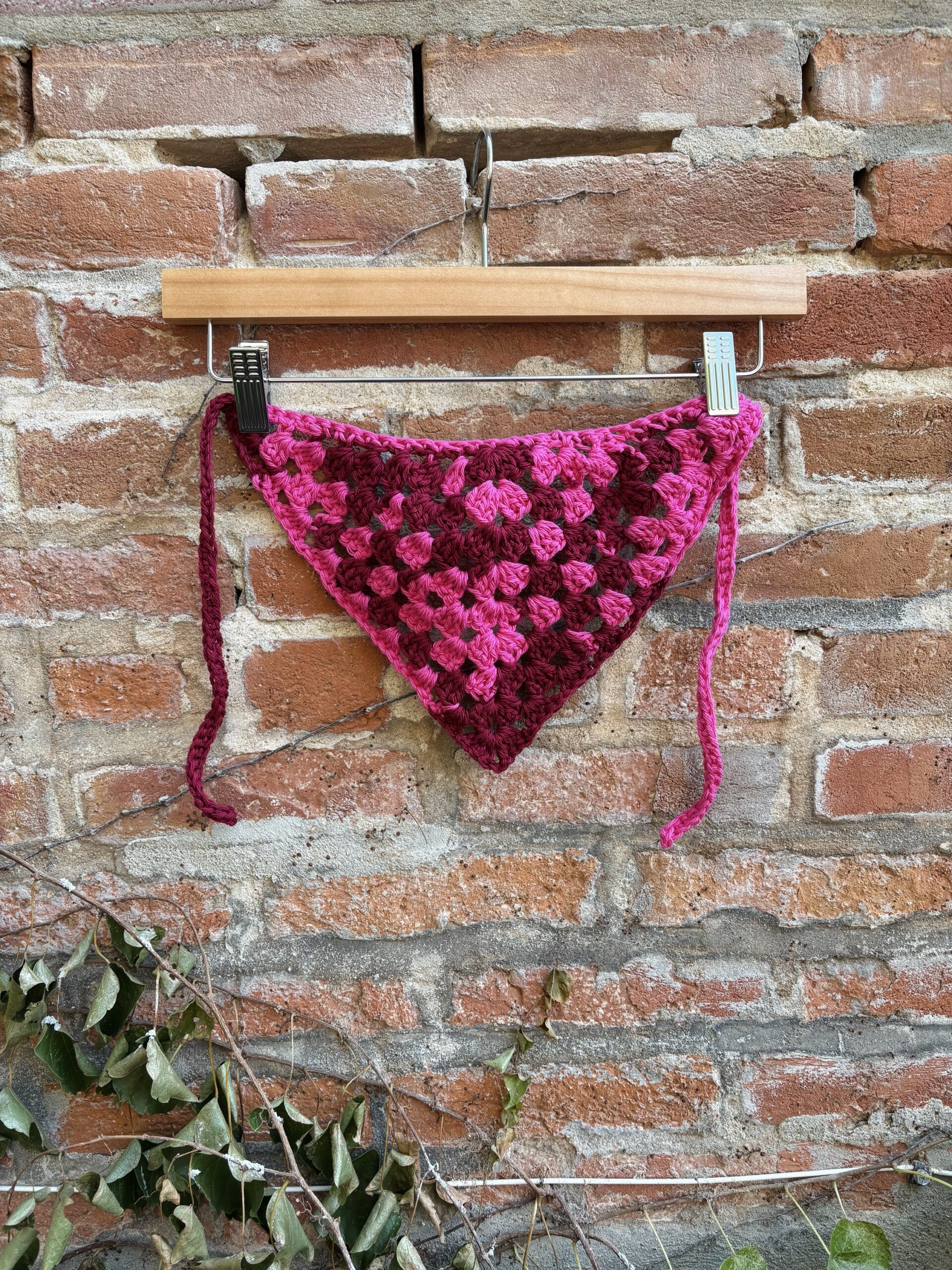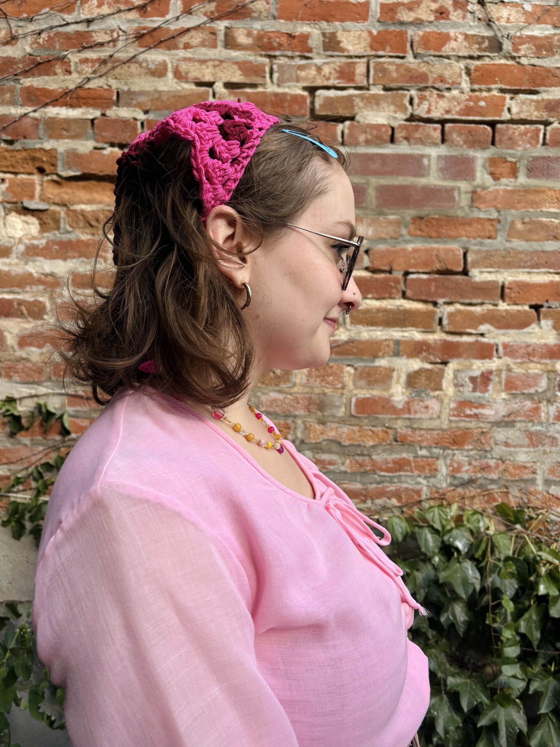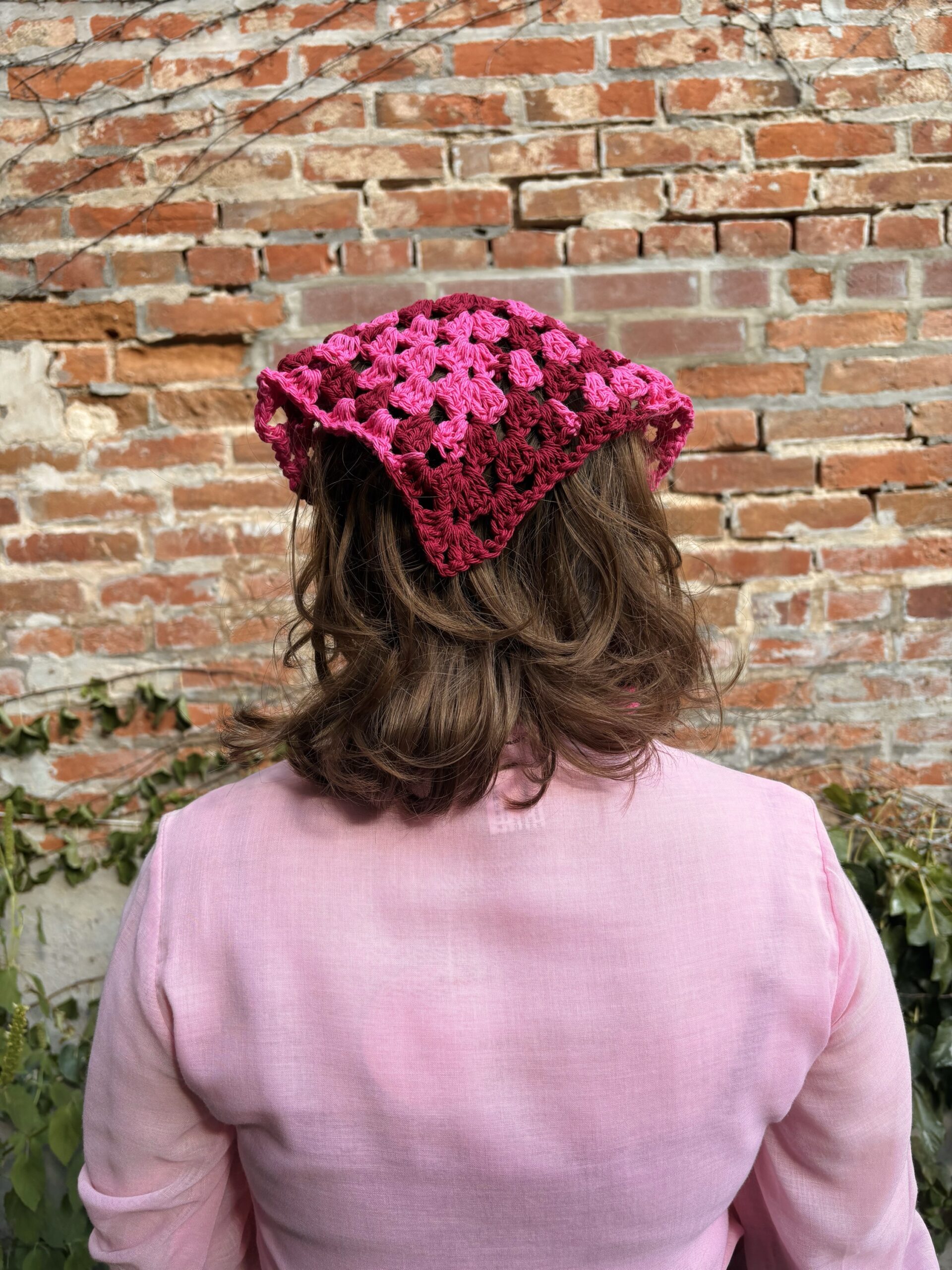 Limited edition, hand-crocheted head scarf by Brigitta Vande Lune in collaboration with The Slow Era