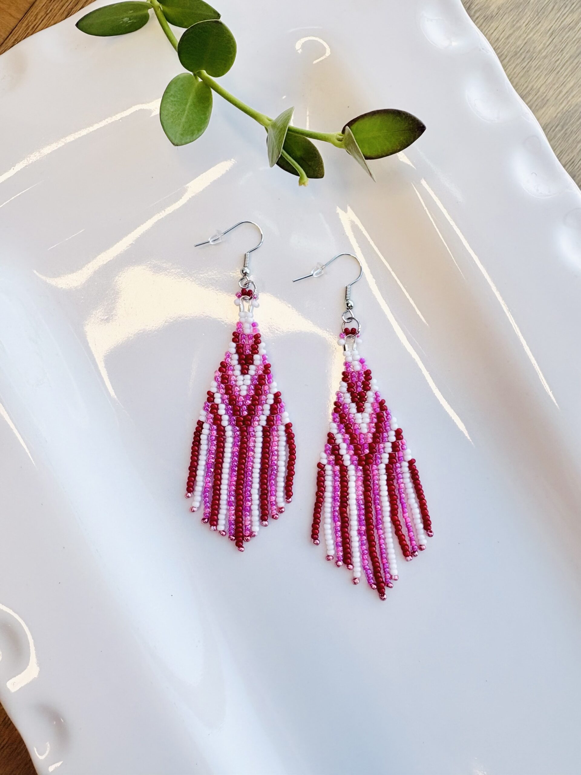 Kathleen Embrey Pink and Red beaded fringe earrings