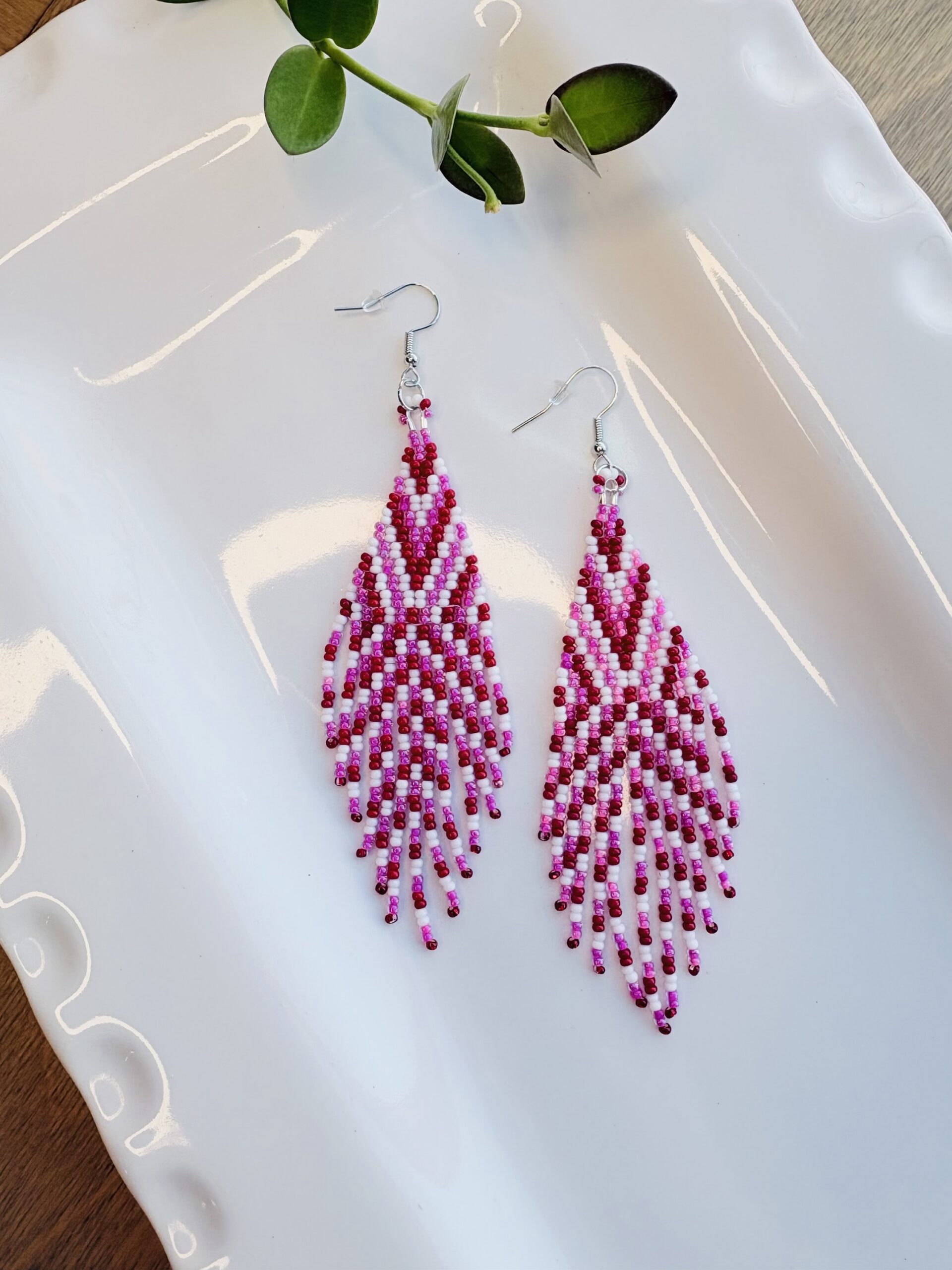 Kathleen Embrey Pink and Red Beaded Fringe Earrings